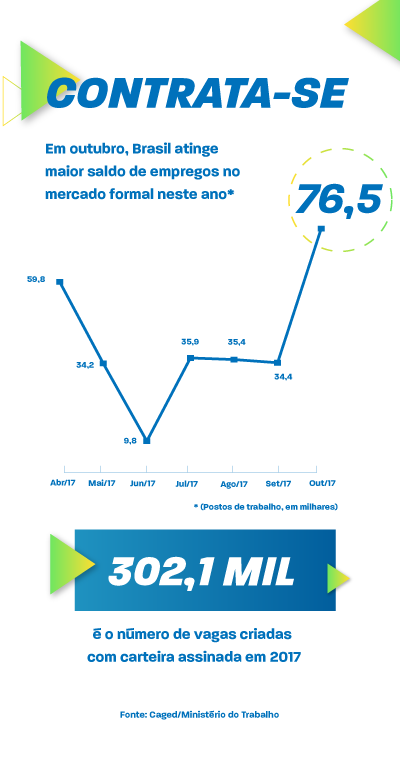24 nov Portal Brasil Postado por confep Brasil atinge melhor resultado em três anos e gera mais de 76 mil vagas de trabalho Com o desempenho revelado pelo Caged de outubro, País acumula 303,2 mil vagas criadas em 2017 e quebra ciclo d... Continuar lendo