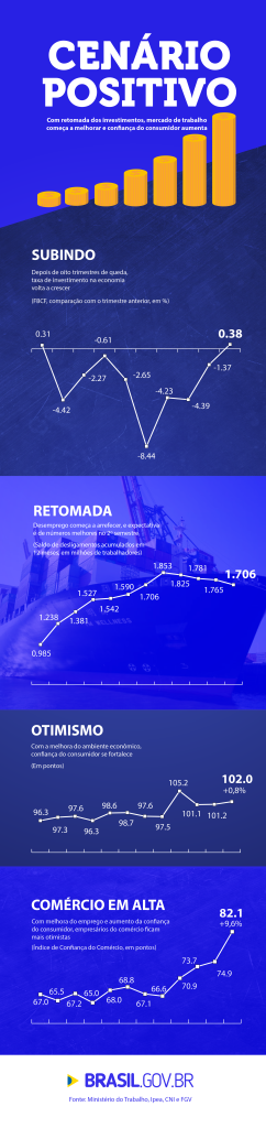28 ago Portal Brasil Postado por confep Menor desemprego e volta dos investimentos sugerem retomada do crescimento Melhora dos índices de confiança, aumento de investimentos produtivos e desaceleração do desemprego sugerem re... Continuar lendo