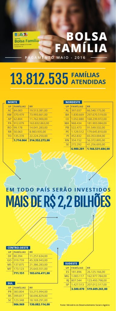 24 maio Portal Brasil Postado por confep Bolsa Família complementa renda de 13,8 milhões de famílias em maio Até o dia 31, o governo vai transferir mais de R$ 2,2 bilhões às famílias cadastradas. Pagamento começou nesta... Continuar lendo