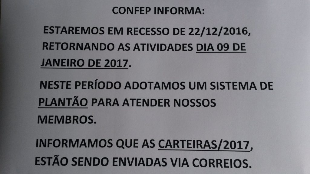 22 dez CONFEP no Brasil, Informações do CONFEP Postado por confep CONFEP ANUNCIA RECESSO NO GABINETE CONFEP ANUNCIA RECESSO NO GABINETE. Continuar lendo