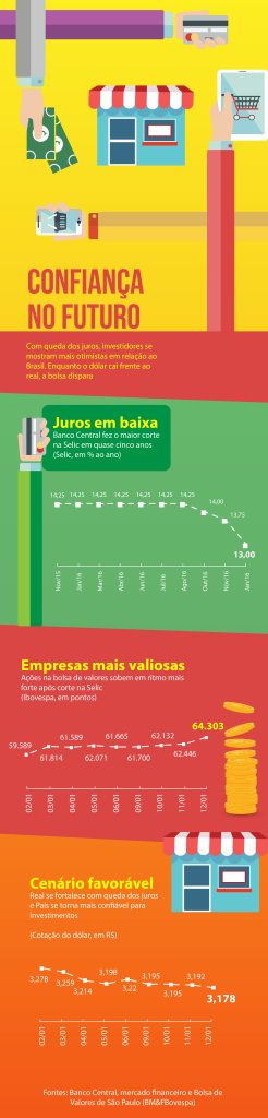 13 jan Portal Brasil Postado por confep Com queda da Selic, bolsa sobe e dólar cai O Ibovespa, que abriu a quinta-feira aos 62 mil pontos, terminou o dia em 63.954, com alta de 2,41%. Dólar rec... Continuar lendo