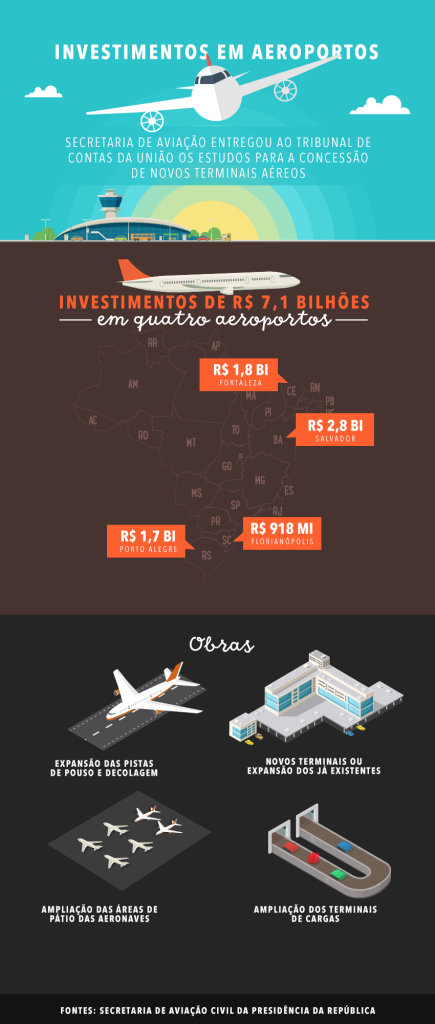 23 dez Portal Brasil Postado por confep Concessões de aeroportos devem gerar investimentos de R$ 7,1 bilhões Tribunal de Contas da União avalia estudos para concessões dos aeroportos de Porto Alegre, Salvador, Florianóp... Continuar lendo