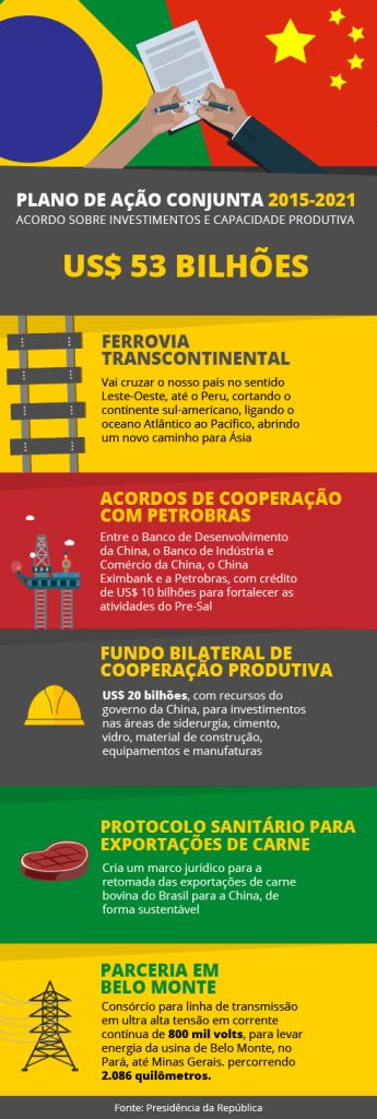 24 maio Portal Brasil Postado por confep Brasil e China criam fundo de US$ 50 bi e planejam ferrovia até o Peru Presidenta Dilma Rousseff recebeu o primeiro ministro Li Keqiang e fechou 35 acordos de investimentos e comérc... Continuar lendo