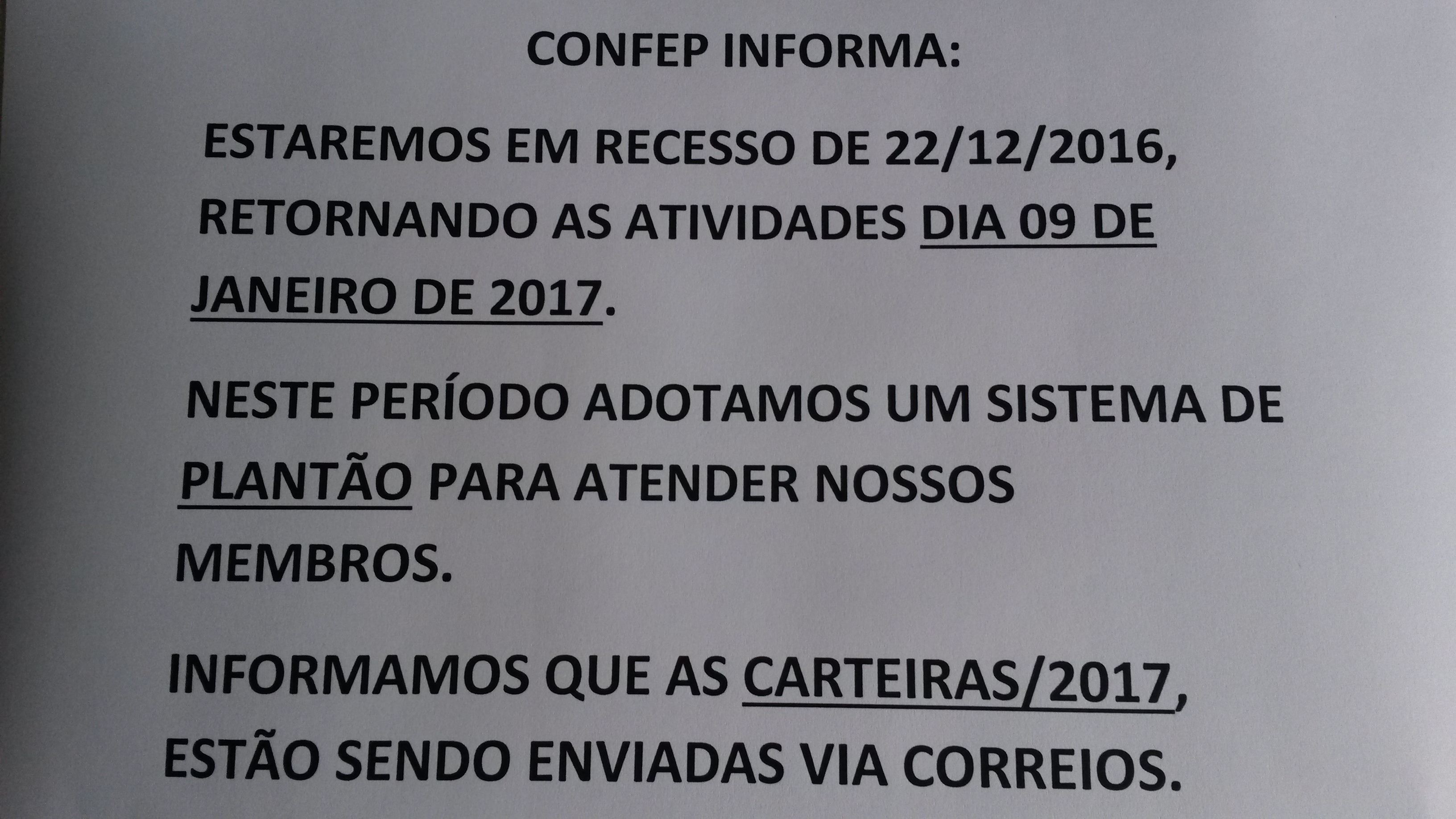 Comentários desativados em CONFEP ANUNCIA RECESSO NO GABINETE