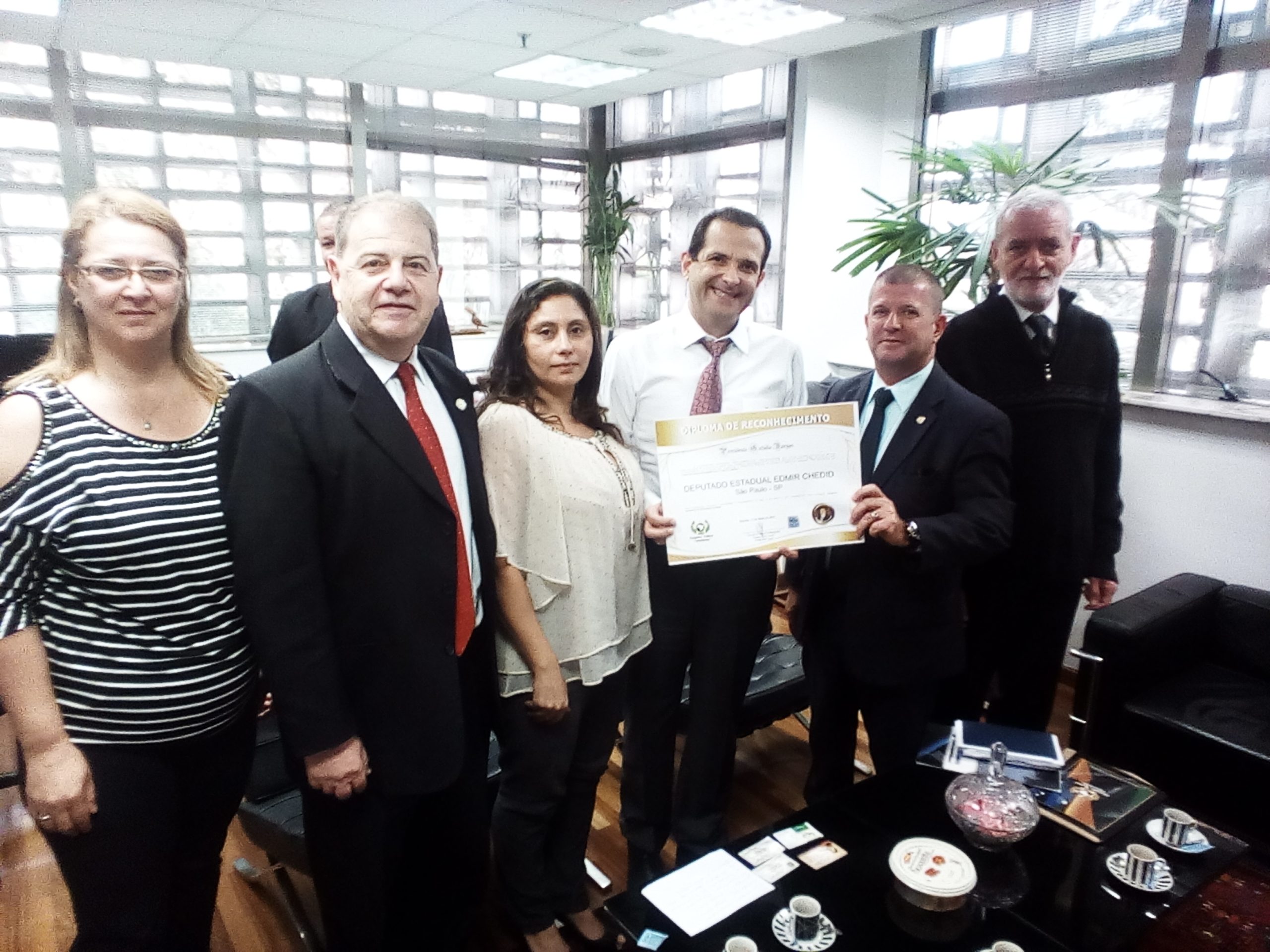 O Deputado Estadual /SP, EDMIR CHEDID, recebeu na data de ontem, o DIPLOMA GETÚLIO VARGAS em reconhecimento pelo belíssimo trabalho realizado. A comitiva do CONFEP, foi composta pelo Dr. Alberto (Presidente), Paulo Ferreira (Institucional), Silvio Bidinoto (Delegado/SP), Dra. Adriana (Delegada/SP), Silvia Andreoti (Delegada/SP), Dr. João Nunes (Delegado/SP).