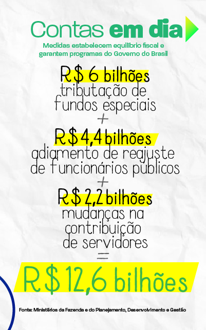 Medidas economizam dinheiro público, melhoram as condições fiscais do País e contribuem para a construção de um cenário de menor desigualdadeSem afetar o orçamento das famílias de renda mais baixa, o Governo do Brasil tomou medidas que vão aumentar a arrecadação de impostos e ainda economizar o dinheiro público. São ações que nenhum outro governo teve coragem de tomar. O objetivo é gerar um impacto positivo de mais de R$ 12 bilhões para os cofres estatais.