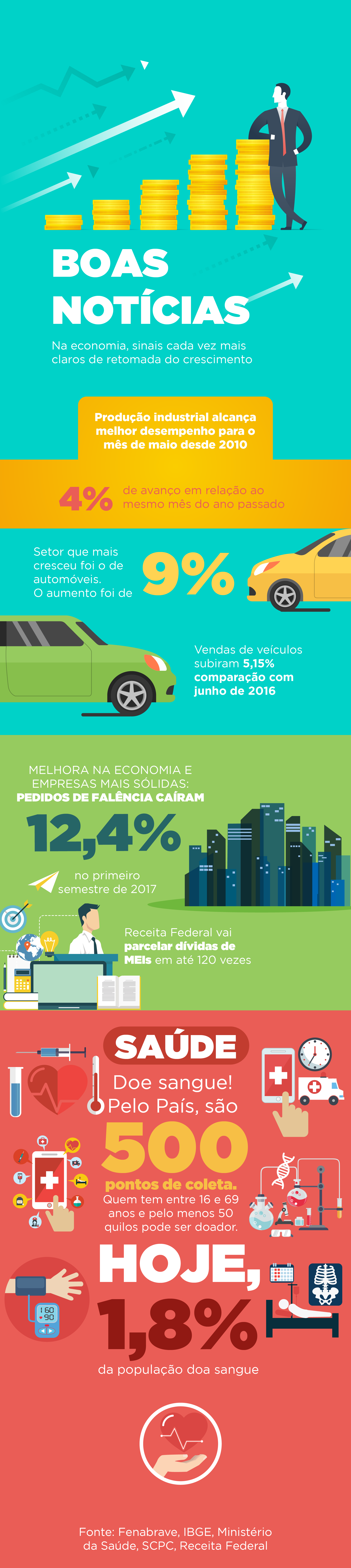 A economia do País começou a dar sinais de recuperação. Indicadores divulgados nesta terça-feira (4) apontam para a melhora em setores importantes, como a indústria, além de queda no registro de número de falências.