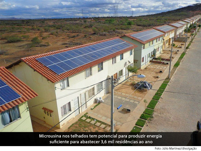 Os 9.144 painéis fotovoltaicos instalados nos telhados transformaram os condomínios Praia do Rodeadouro e Morada do Salitre, em Juazeiro, no sertão baiano, em uma microusina de energia solar com potencial para produzir 2,1 Mega Watts (MW), o suficiente para abastecer 3,6 mil domicílios em um ano.