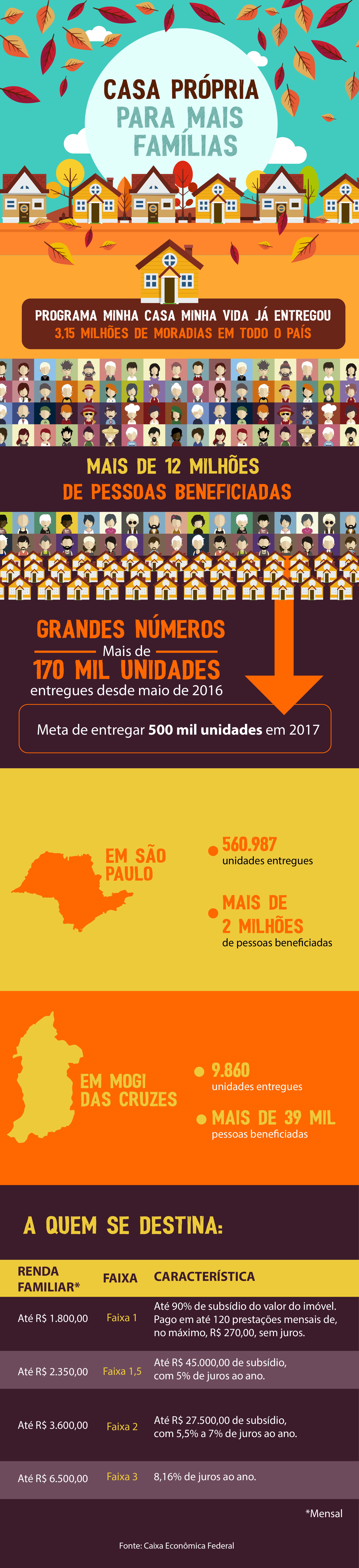 No Brasil, o programa já beneficiou mais de 12 milhões de pessoas, com a entrega de 3,15 milhões de moradias. No estado de São Paulo, foram entregues 560.987 unidades, beneficiando mais de 2 milhões de pessoas. Em Mogi das Cruzes, mais de 39 mil pessoas foram beneficiadas com a entrega de 9.860 unidades habitacionais.